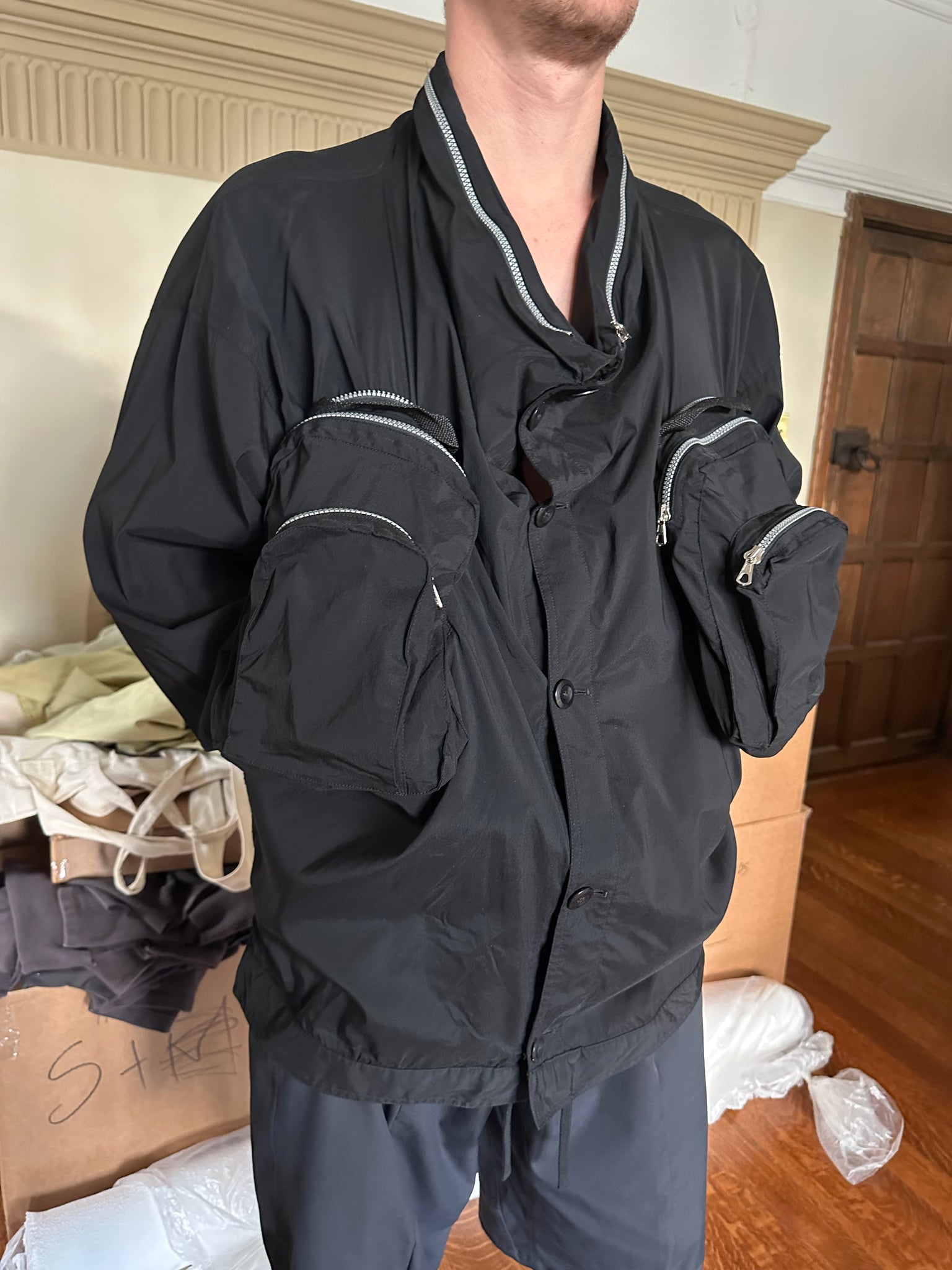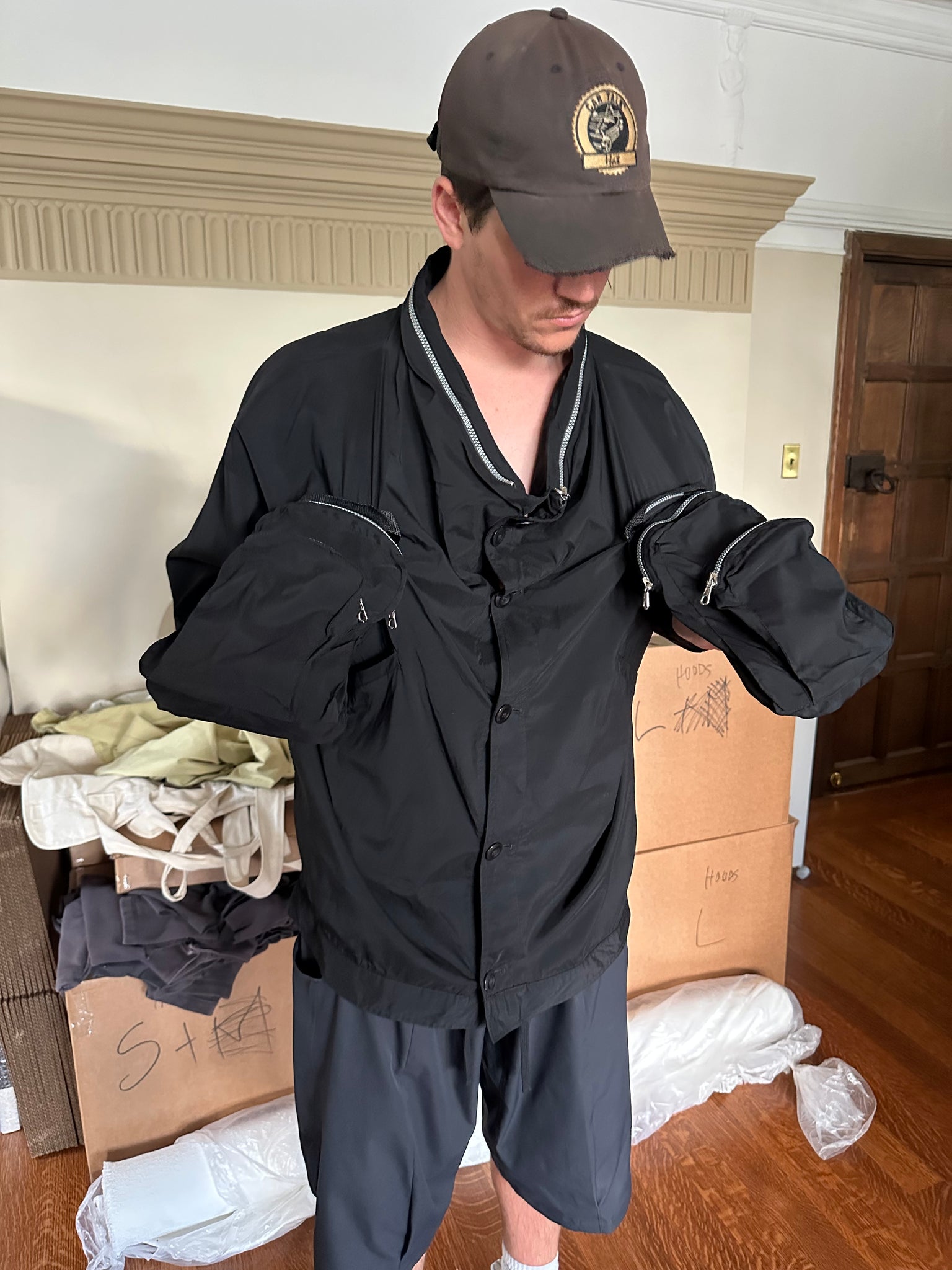 Material: Rayon / Nylon / Lycra Condition: 7/10 General Notes: Hood has been cut out. Color: Black Tagged Size: 54 Size: XL Model Height Reference: 5'11"